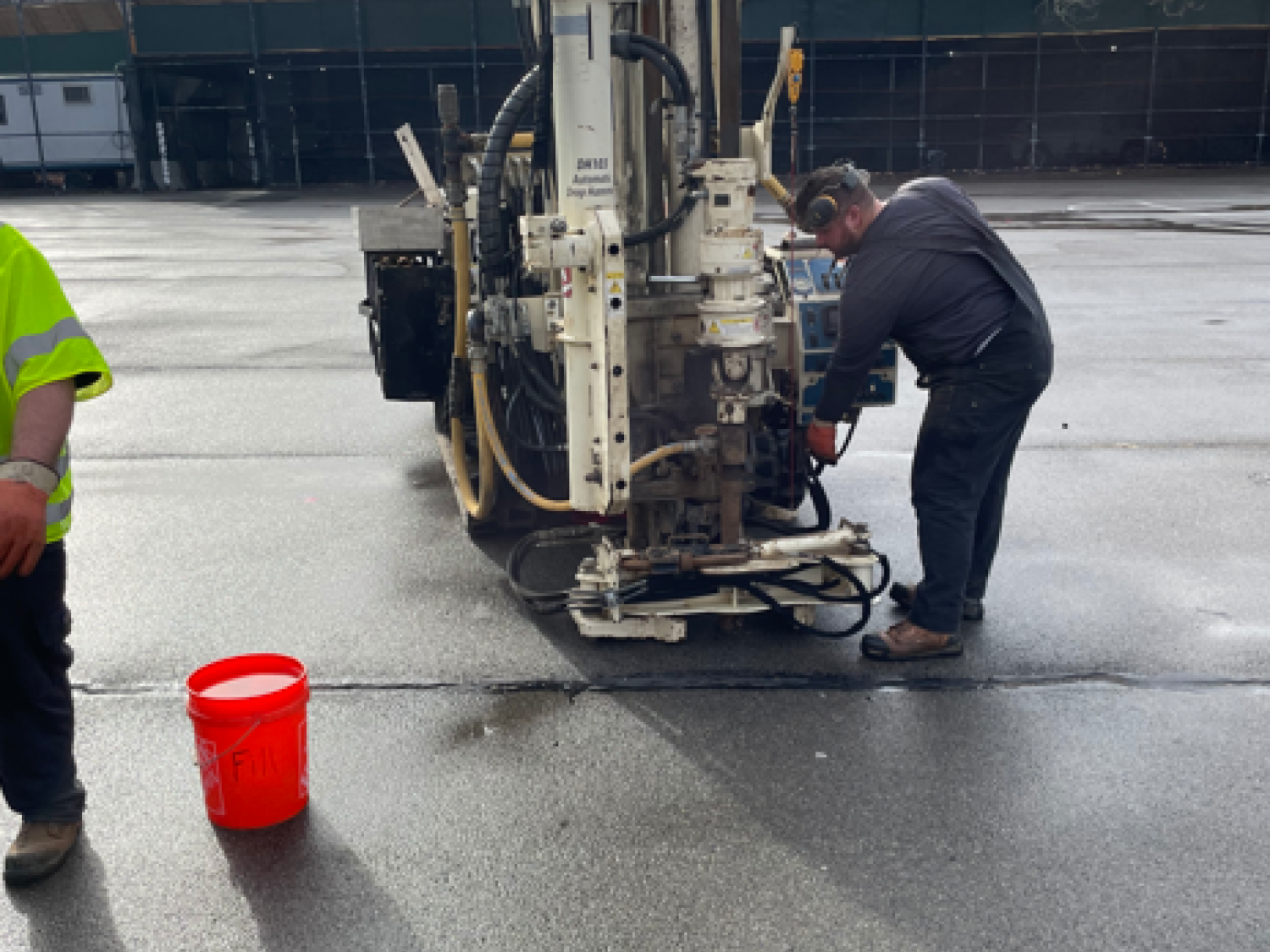 During the test boring operations, MFS observed the subsurface conditions and generated test boring logs to include soil classifications in accordance with the Unified Soil Classification System (USCS) and New York City Building Code (NYCBC), groundwater observations, action of equipment, and other noteworthy observations. The boring logs showed borehole and sample diameters and depths at which drilling or sampling methods or equipment changed. Logs showed total depth of penetration, blow counts, groundwater level (if encountered), and types of sampling. The drilling equipment make and model, drilling method, date and time drilled, casing, any heaving conditions, loss of circulation, and voids were also noted on the logs.
