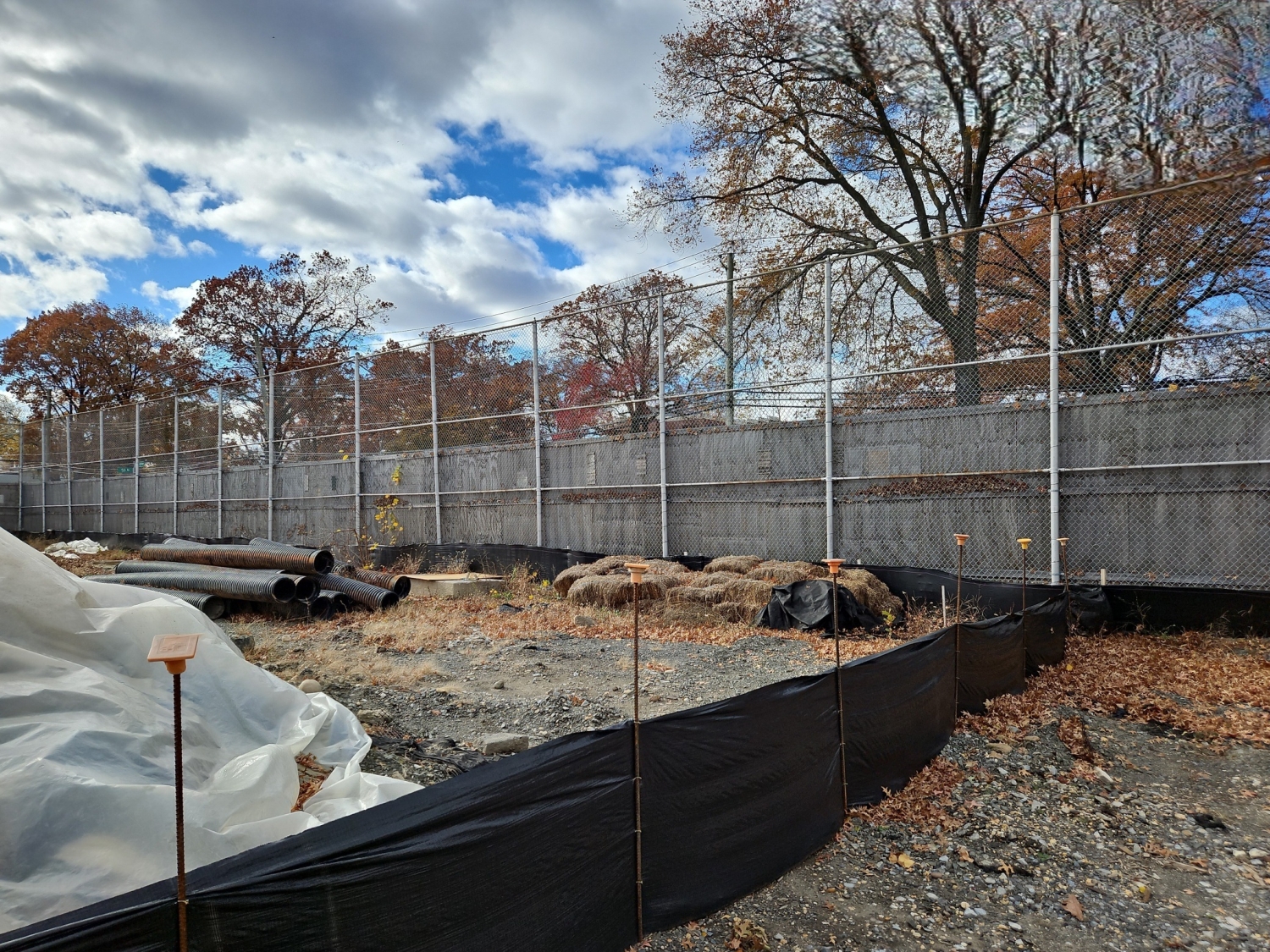 MFS conducted SWPPP inspections twice weekly, separated by at least two calendar days, and within 24 hours of any rainfall event exceeding 0.5 inches. Inspections covered all active erosion and sediment controls, pollution prevention measures, disturbed areas, stormwater management practices under construction, and all site discharge points. Any non-conformances were documented and reported to NYCDEP and the project team for corrective action.